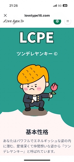 こんにちはー! スペクターのみさです! 先日もありがとうございました😊 みなさま今流行りのlove type診断 もうしましたかー?💭 簡単に言うとMBTIの恋愛バージョンみたいな ものです🙂 ちなみにMBTIはISTP(巨匠)なんですけど Love type はLCPE(ツンデレヤンキー)でした! 情にアツイ優しい人間だって‼️笑 恋愛性質は報われない恋が多いらしい😂 ええやつってことばれちゃいました😆笑 みんなも診断したら教えてねー!♡ 今日も21時から待ってます😊