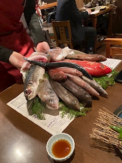 今週は今日、金曜、土曜 スペクターいてます♡金土ははやめのサンタコス🤶するよん! いっしょにのみましょう!🩷 こないだごちそうになった海鮮居酒屋のおさかな、すぎょい😲🐟